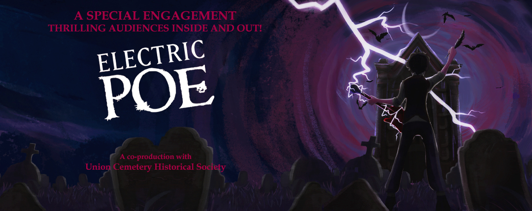 Captivating audiences once again, Electric Poe will perform on stage at The Coterie for students and educators, SEP 14 – OCT 2. Then for the spooky season, it will perform outside in Union Cemetery for sunset performances for families, OCT 14 – NOV 1, 2026. One actor and one musician will bring the master of the macabre to life with superb acting accompanied by atmospheric underscoring in front of Union Cemetery’s “Holding Vault,” built in 1857 in Kansas City’s oldest public cemetery.